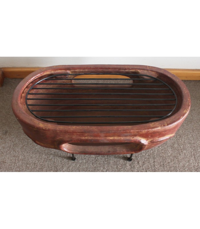 Espectacular barbacoa a carbón de 60 x 35 cm – Con solo $ 50 de carbón, es capaz de asar carnes para 10 comensales. Viene con pie de hierro que disipa el calor para que pueda cocinar directamente en su mesa sea del material que sea. Hechas absolutamente a mano y horneadas a más de 1000 º con lo cual no se rajan jamás. Totalmente transportable Ideal para utilizar en balcones, terrazas o jardines o para llevarlas a un día de camping o playas. Ideales para particulares o hostelería en general. Es un regalo ideal para cumpleaños o casamientos.