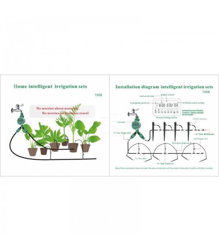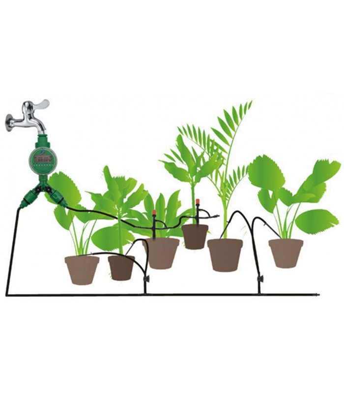 Riego automático, kit completo de riego con temporizador, manguera y goteros para 20 plantas.