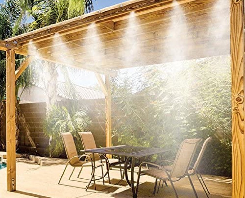 | SET blanco/negro de 12m Bomba de diafragma 12V: 1 pieza Fuente de alimentación: 1 pieza Tubería de suministro de agua de 3 metros 9 metros de tubo de aspersión, 16 boquillas de niebla, tubería de succión de 3 m 1 conector de grifo 1 enchufe final 40 bridas para cables 40 hebillas de tubo |